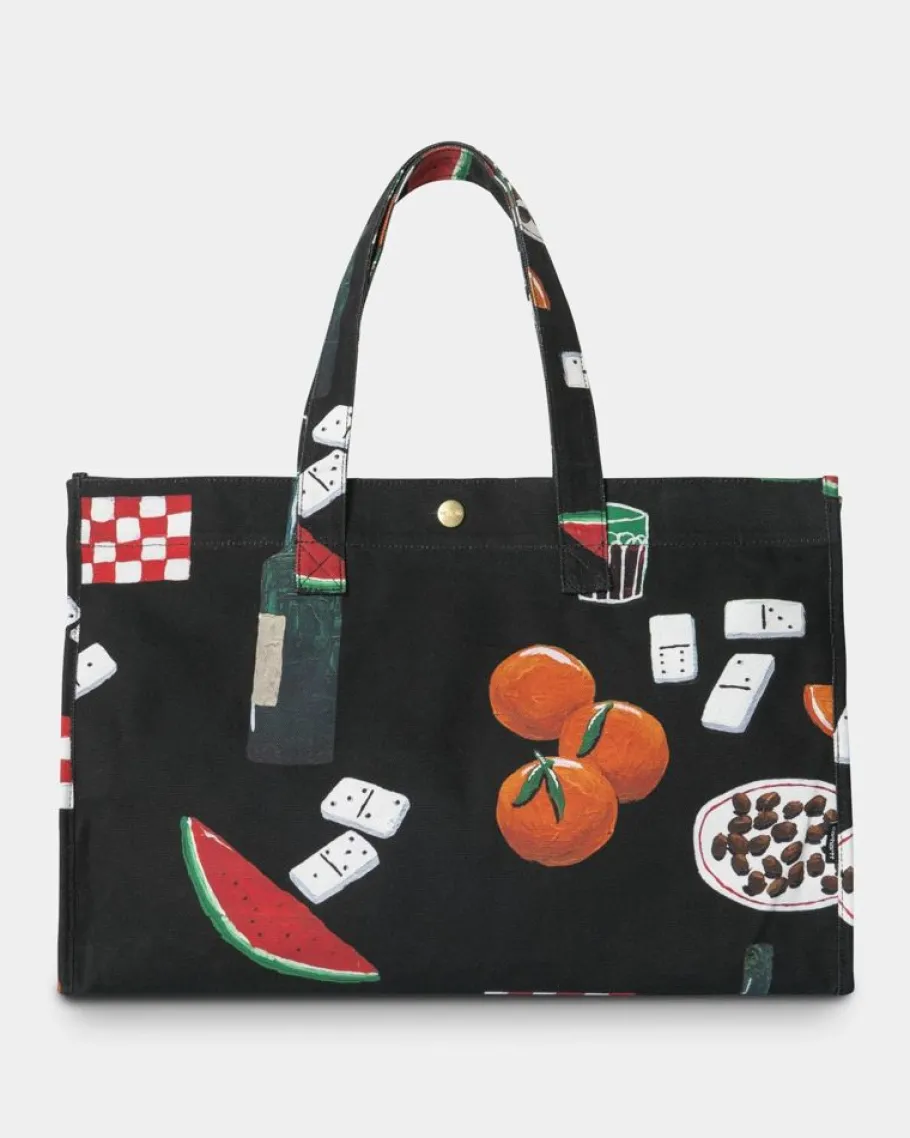 Canvas Graphic Beach Bag Er Lavet Af Robust Dearborn Canvas, Med Et Allover Grafisk Print Af Kunstneren Isis Maria. Indvendigt Er Varen Uforet Og Har En Svinglomme. Tasken Lukkes Med En Enkelt Trykknap.
