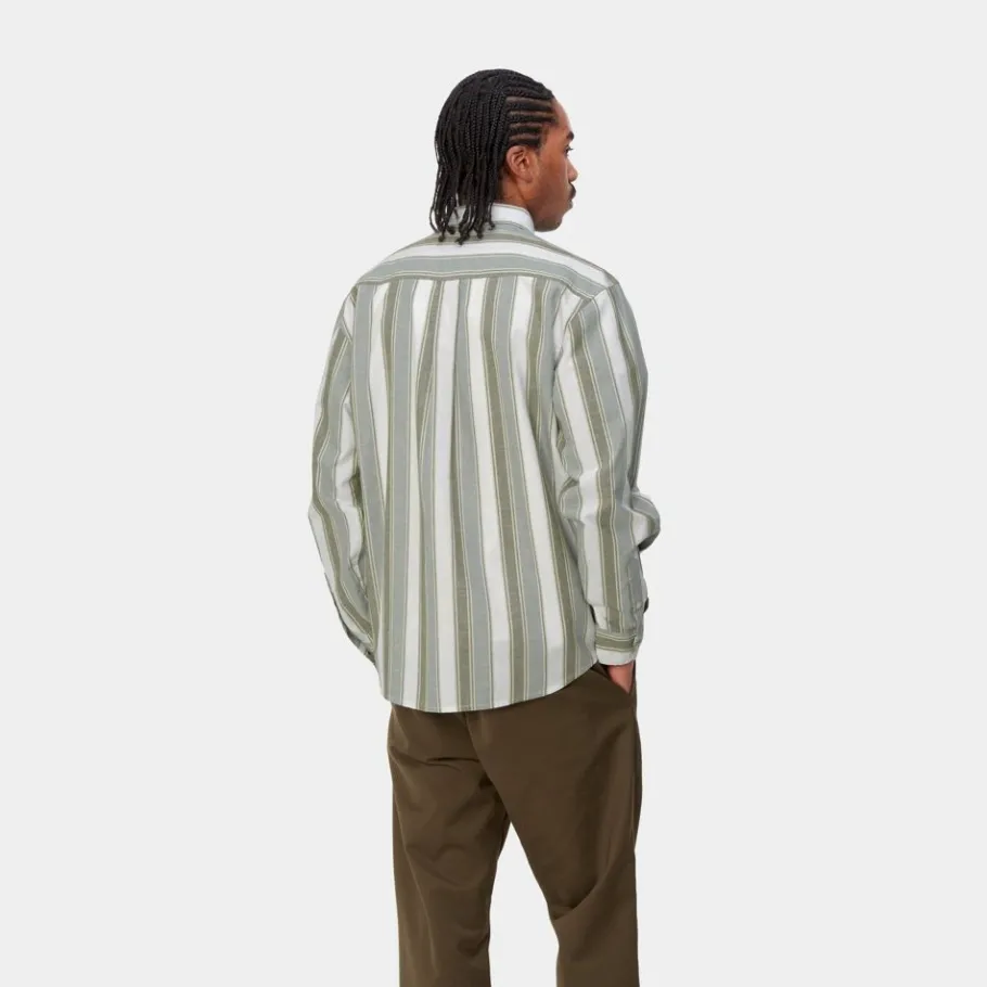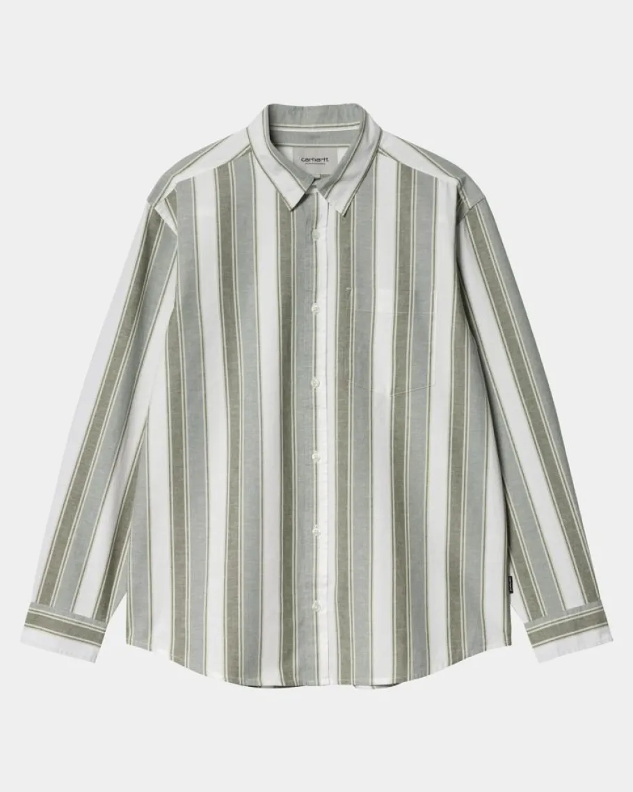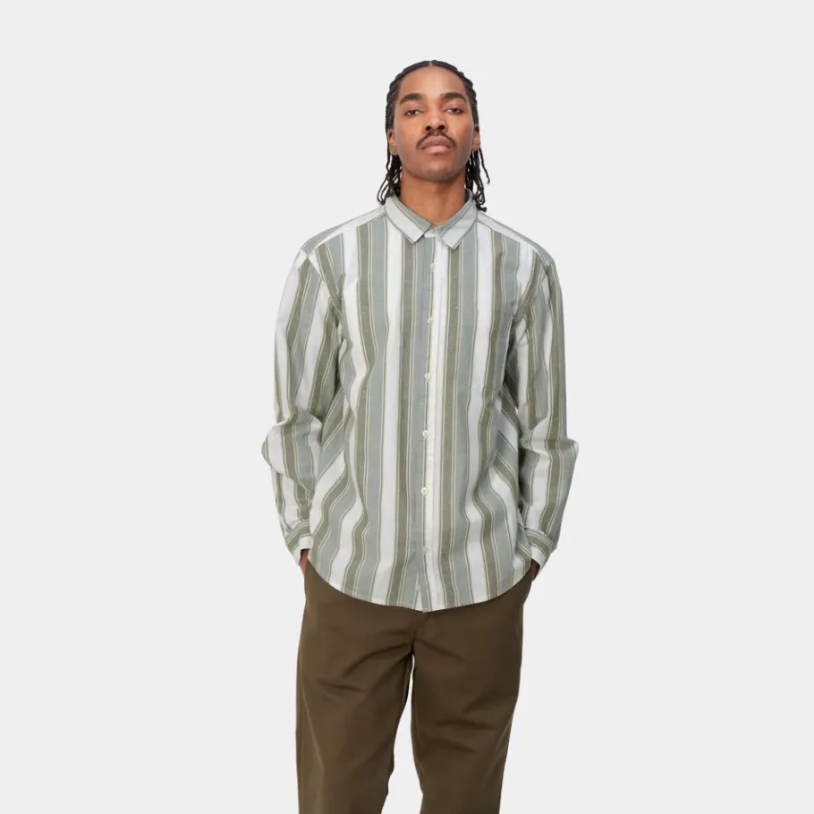 L/S Kendricks-Skjorten Er Lavet I En Løs Pasform Af Let Bomulds-Hørstof. Varen Har Allover Striber Og Er Blevet Tøjvasket For En Blødere Følelse. Den Har Også En Enkelt Brystlomme. En Vævet Flaglabel Fuldender Designet.