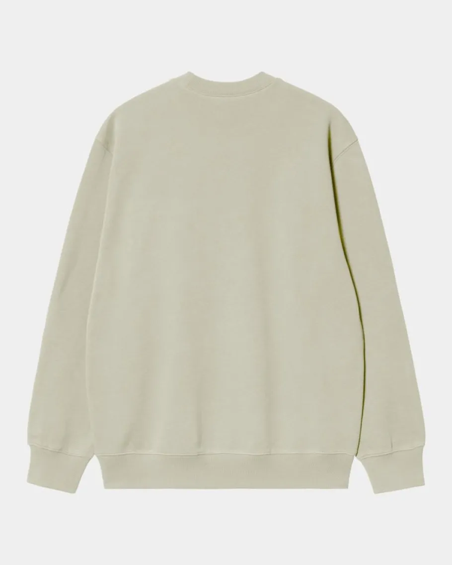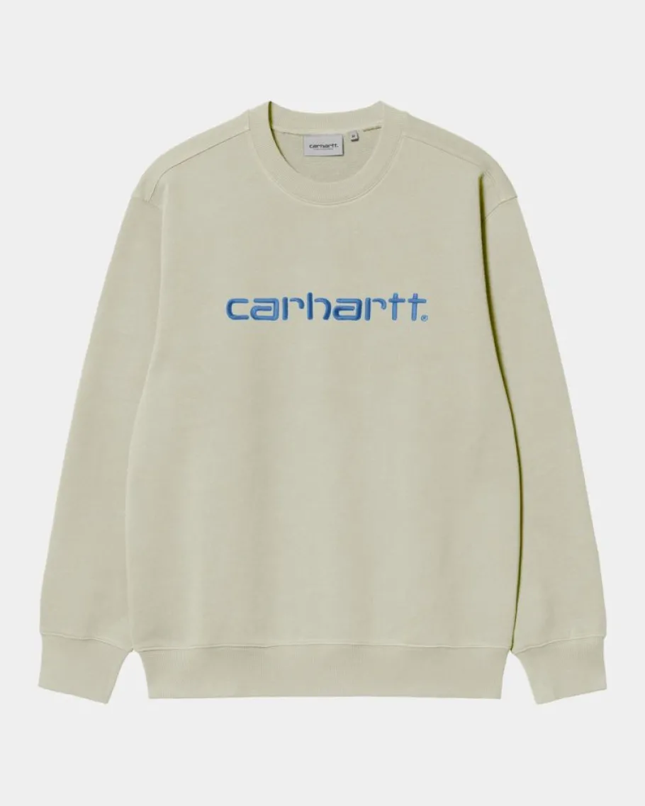 Carhartt Sweatshirten Er Lavet I En Løs Pasform Af Kraftigt Bomuld-Polyjersey-Stof, Som Er Børstet For En Fleece-Lignende Bagside. Den Har Også En Ribbet Krave, Søm Og Manchetter. Et Broderet Script-Logo Vises På Tværs Af Brystet.