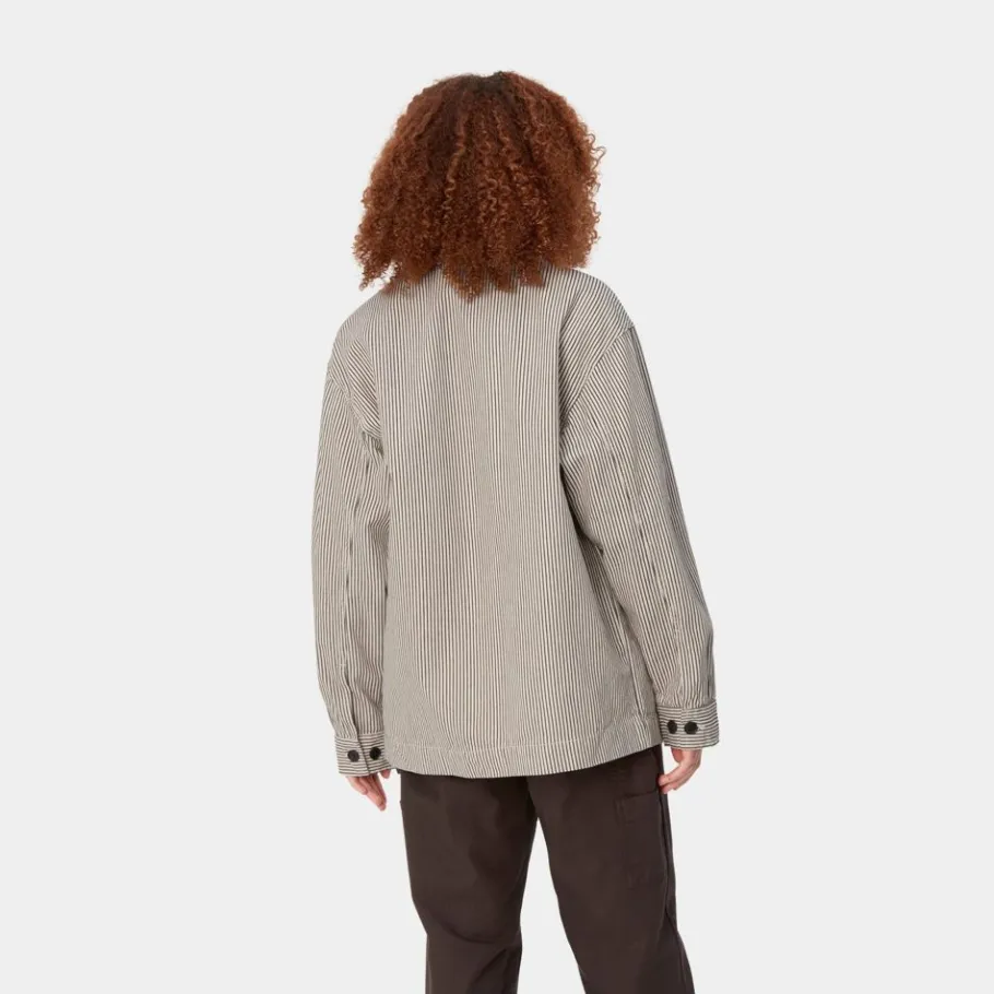 Haywood-Frakken Til Kvinder Er Lavet Af Mellemvægtig, Hickory-Stribet Bomuld Og Er Uforet. Den Har En Knaplukning Foran Og Justerbare Manchetter Med Knap. En Vævet Firkantet Etiket På Fronten Fuldender Designet.