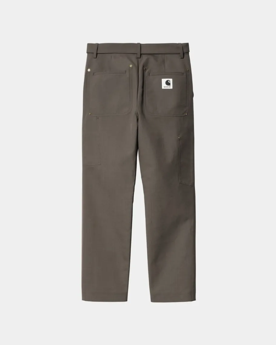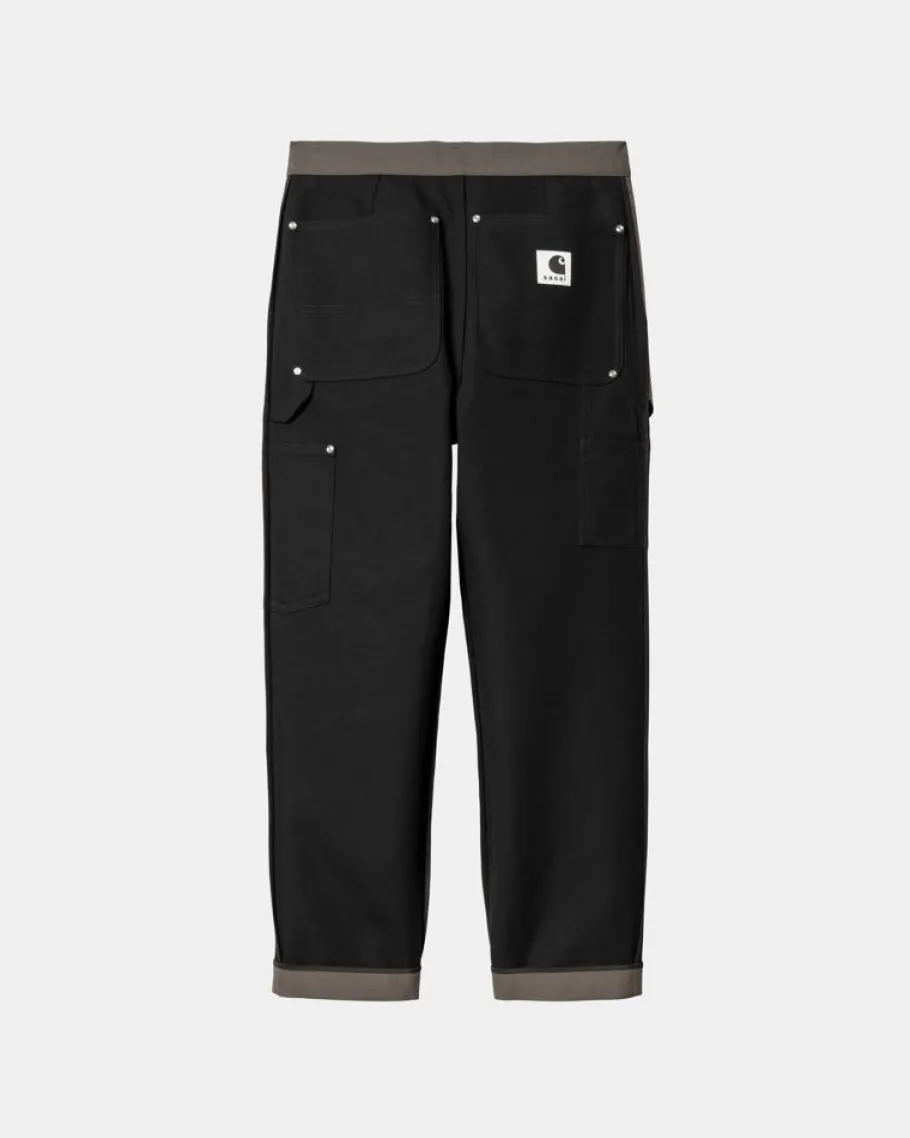 Suiting Bonding Pants Er En Hybrid Af Carhartt Wip’S Arbejdsbukser Og Sacais Bukser. Varen Er Konstrueret Af To Bundne Lag Stof Og Kan Bæres Vrangen Ud. På Overfladen Er Sacai’S Uld-Blend Suiting Stof Og På Bagsiden Er Carhartt Wip’S Duck Canvas. På Ydersiden Krydser Talje- Og Hoftelommer, Der Tilhører Sacais Bukser, Carhartt Wips Arbejdsbukselommer På Undersiden. Når De Bæres Vrangen Ud, Er Rørdetaljer Et Særpræg, Og Sacais Bukselommer Kan Fortsætte Med At Blive Brugt. En Co-Branded Vævet Etiket Vises På Begge Sider.