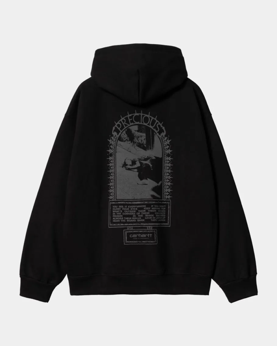 Til Udgivelsen Af Carhartt Wips Seneste Skatefilm Precious Er Et Udvalg Af Eksklusive Produkter. The Hooded Precious Sweatshirt Er Lavet I En Løs Pasform Af Kraftig Polybomuldsjersey Med En Børstet Fleece-Lignende Bagside. Varen Er Detaljeret Med Grafiske Print Og Broderi Foran Og Bagpå.