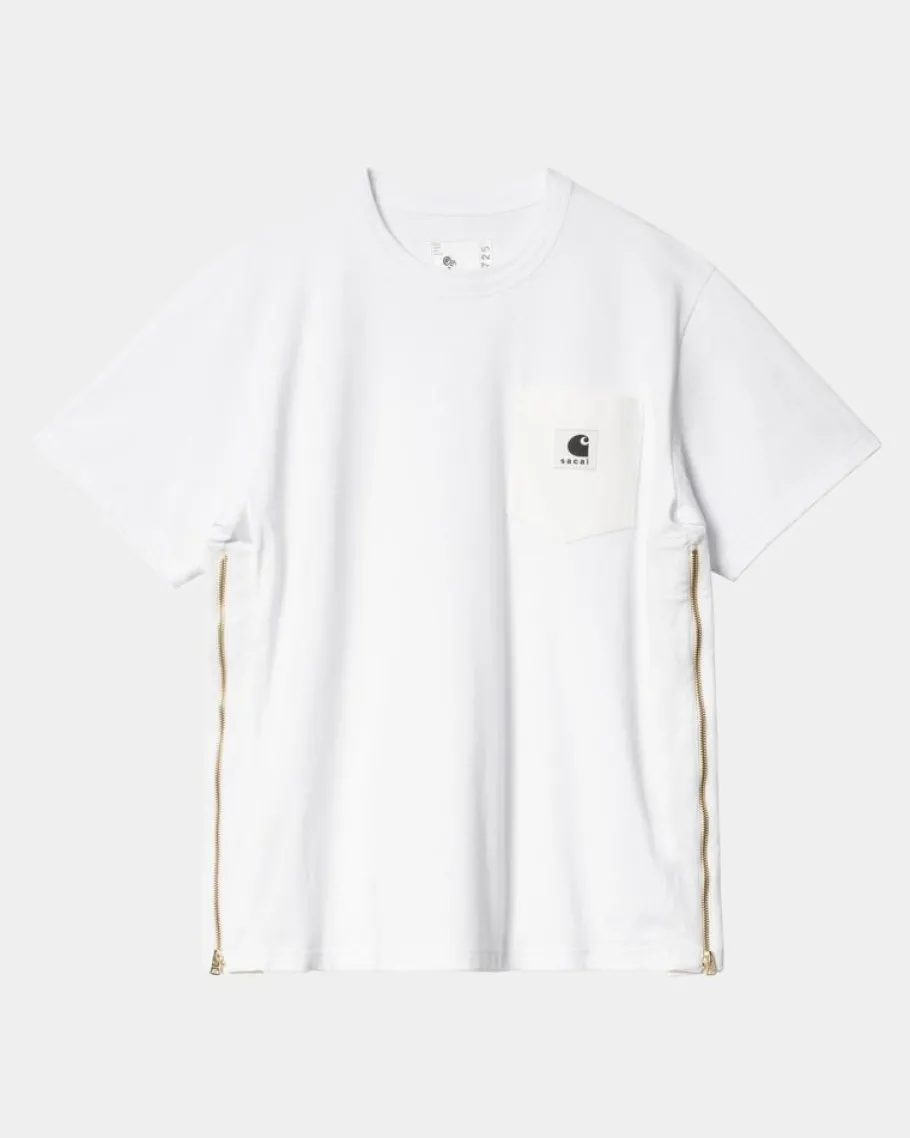 T-Shirten Er En Hybrid Af Carhartt Wip’S Pocket T-Shirt Og Sacais T-Shirt. Den Har Carhartt Wips Tunge Duck Canvas På Brystlommen Og En Let Version Af Det Samme Stof På Sideslidserne. Disse Åbninger Er Detaljerede Med Lynlåse. En Brystlomme Og Co-Branded Vævet Etiket Fuldender Designet.