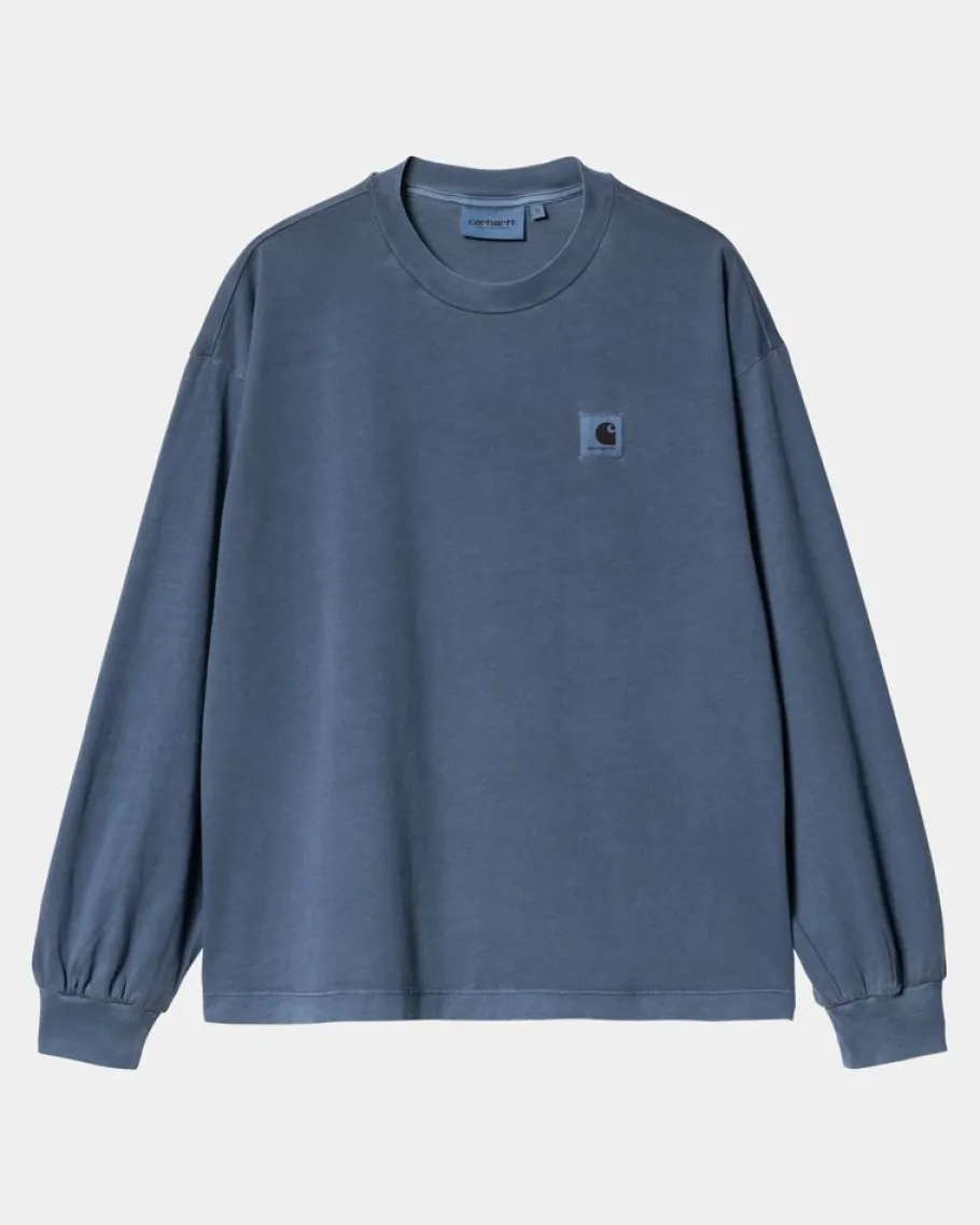 L/S Nelson T-Shirten Til Kvinder Er Lavet Af Let Bomuldsjersey I En Løs Pasform. Varen Er Også Farvet Til En Blødere Fornemmelse Og En Mere Kompleks Farvekonfiguration. En Vævet Firkantet Etiket, Der Er Gjort Grumset Af Farvningsprocessen, Vises På Venstre Bryst.