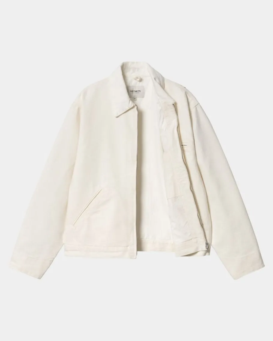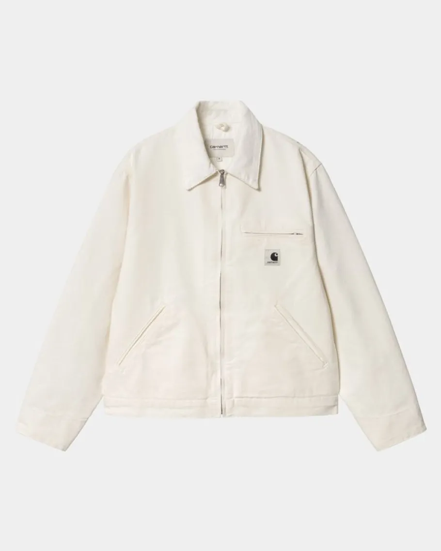 Og Detroit-Jakken Til Kvinder Er Lavet I Vores Originale Løse Pasform Af 12 Oz Økologisk Bomuld Dearborn Canvas, Som Er Et Robust Stof, Der Vil Blive Blødt Med Slid Over Tid. Tøjet Er Foret Med Bomuld I Kroppen Og Nylon I Ærmerne. Den Er Yderligere Detaljeret Med En Justerbar Søm Og Manchetter. En Fløjlskrave, En Brystlomme Og En Guldfarvet Lynlåslukning Giver Taktile Detaljer, Mens Tredobbelte Stingsdetaljer Giver Ekstra Holdbarhed.