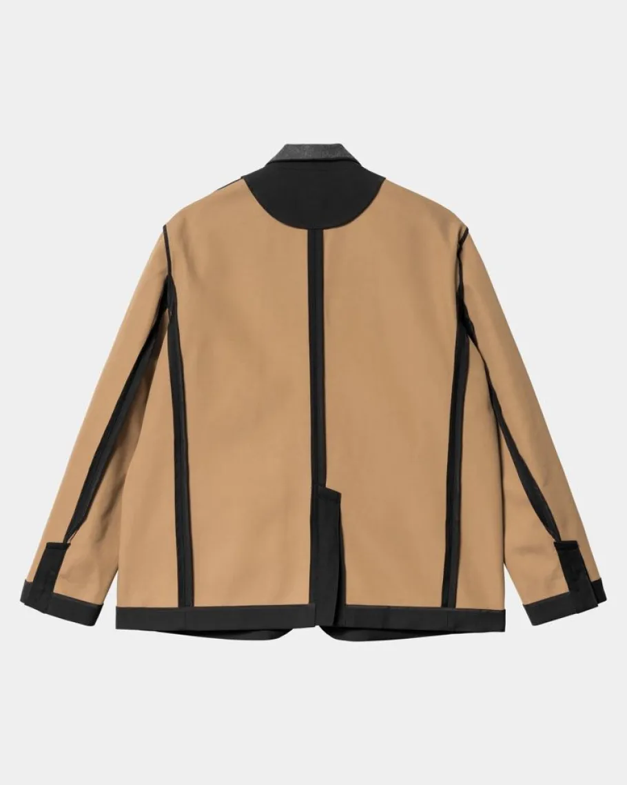 Suiting Bonding Jacket Er En Hybrid Af Carhartt Wip’S Og Chore Coat Og Sacais Enkelt Skræddersyede Jakke. Varen Er Konstrueret Af To Sammenbundne Lag Stof Og Kan Bæres Vrangen Ud. På Overfladen Er Sacai’S Uld-Blend Suiting Stof Og På Bagsiden Er Carhartt Wip’S Duck Canvas. Ligner Sacais Enkelt Skræddersyede Jakke På Ydersiden, En Paspoleret Lomme Vises På Brystet Og To Klaplommer Vises I Taljen. I Mellemtiden Har Indersiden Lommedetaljer, Piping Og Syninger, Der Tilhører Carhartt Wip’S Og Chore Coat. Denne Syning Trækker Også Igennem På Emnets Overflade. Når Den Bæres Vrangen Ud, Er Varens Rørdetaljer Et Karakteristisk Træk. En Co-Branded Vævet Etiket Vises På Begge Sider.