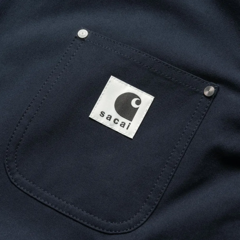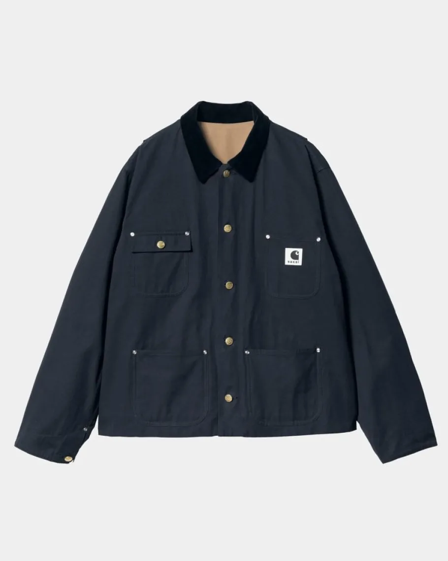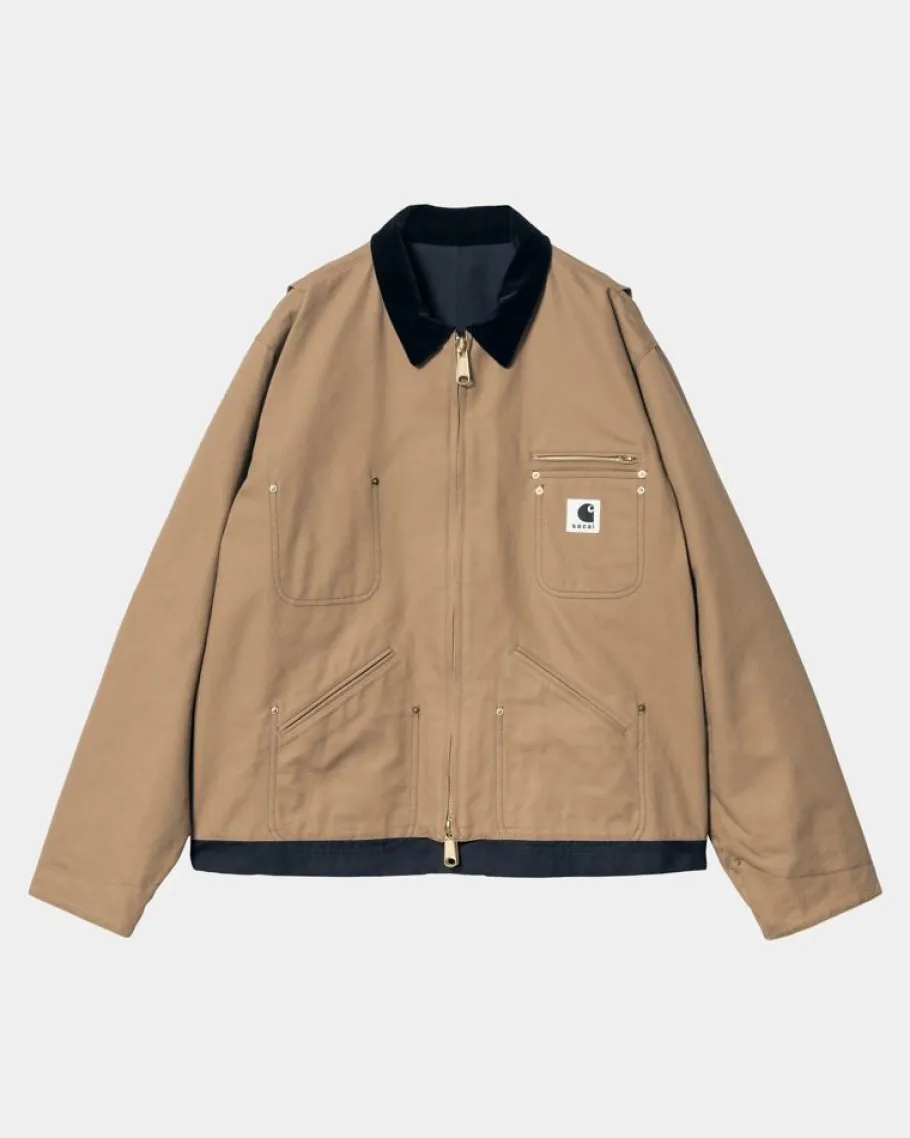 The Reversible Duck Jacket Er En Hybrid Af Carhartt Wip’S Detroit Jacket Og Og Chore Coat. På Overfladen Er Carhartt Wip’S Tunge Duck Canvas Og På Bagsiden Er En Lettere Version Af Det Samme Stof. Varen Har Samme Design På Ydersiden Som Carhartt Wips Detroit Jacket. Indersiden Har I Mellemtiden Lommer Og Syede Detaljer, Der Tilhører Og Chore Coat. Denne Syning Trækker Også Igennem På Emnets Overflade. Begge Jakker Er Syet Sammen Forneden Og Manchetterne, Så Undersiden Er Synlig Fra Overfladen. En Co-Branded Vævet Etiket Vises På Begge Sider.
